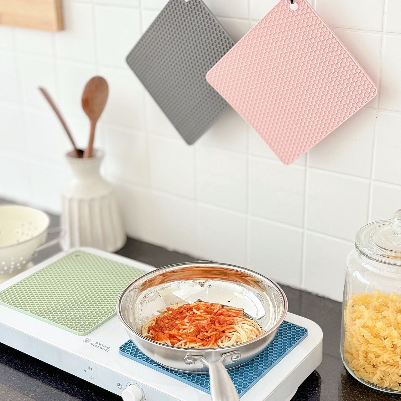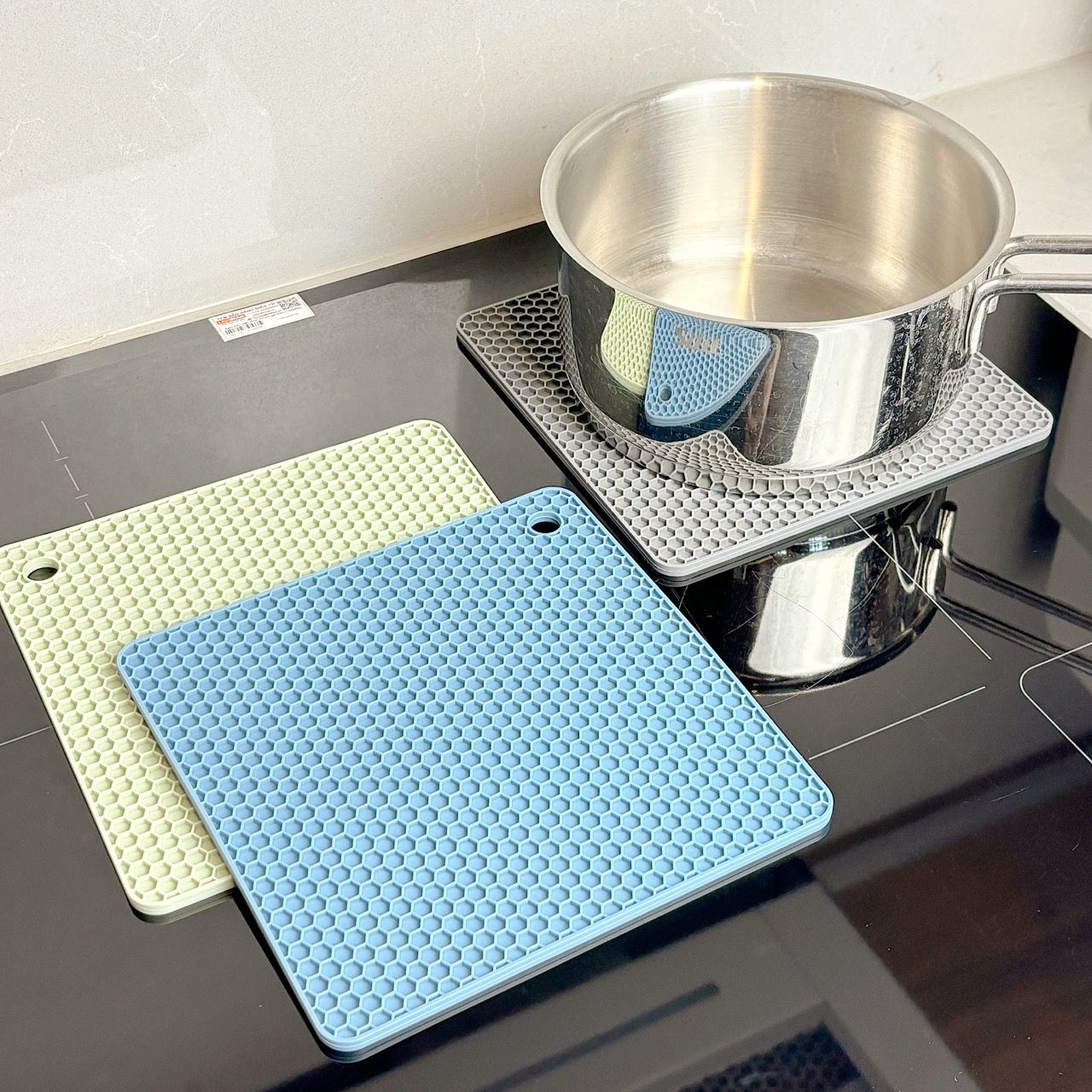 Thin Silicone Mat with Excellent Thermal Conductivity: This mat not only provides stability for your cookware but also ensures efficient heat transfer. It can withstand temperatures up to 250°C. Please note: Avoid using with an empty pot, and do not use this mat on electric ceramic hobs.